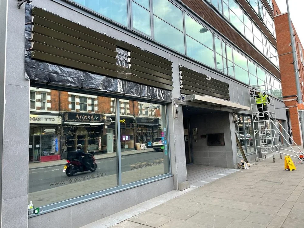The existing façade lacked visual character and did little to stand out within the surrounding streetscape. At the same time, the installation had to work within very limited fixing opportunities, meaning any new structure had to be carefully engineered to ensure stability without extensive structural intervention.
